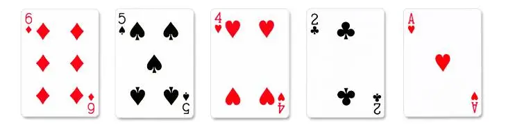 Five uniquely ranked cards with the highest card being a 6.