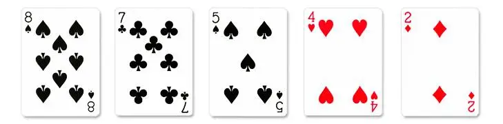 Five uniquely ranked cards with the highest card being an 8.